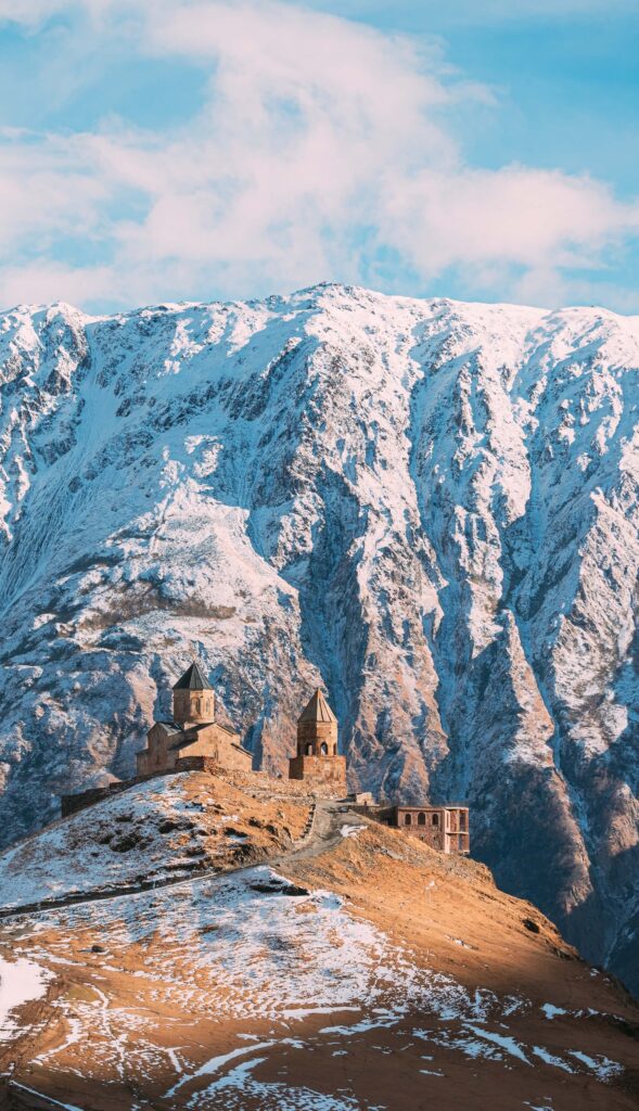 To jedno z najbardziej rozpoznawalnych miejsc, skąd rozciąga się panorama na pięciotysięczny Kazbek i otaczające go doliny. Sceneria, która zawsze trafia na pierwsze miejsce w albumach z Gruzji. Chwila spędzona przy klasztorze daje jednak poczucie kontaktu z czymś więcej niż tylko krajobraz.